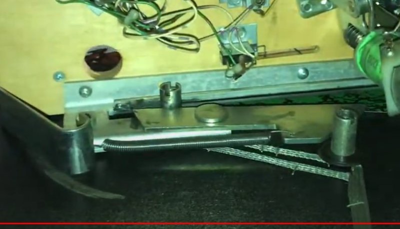 Als ik PF naar voor trek plooit het metalen driehoekje vd playfield assembly niet boven de bout maar gaat ie eronder waardoor de achterste bout niet locked in de sleeve en het systeem geblokkeerd geraakt.