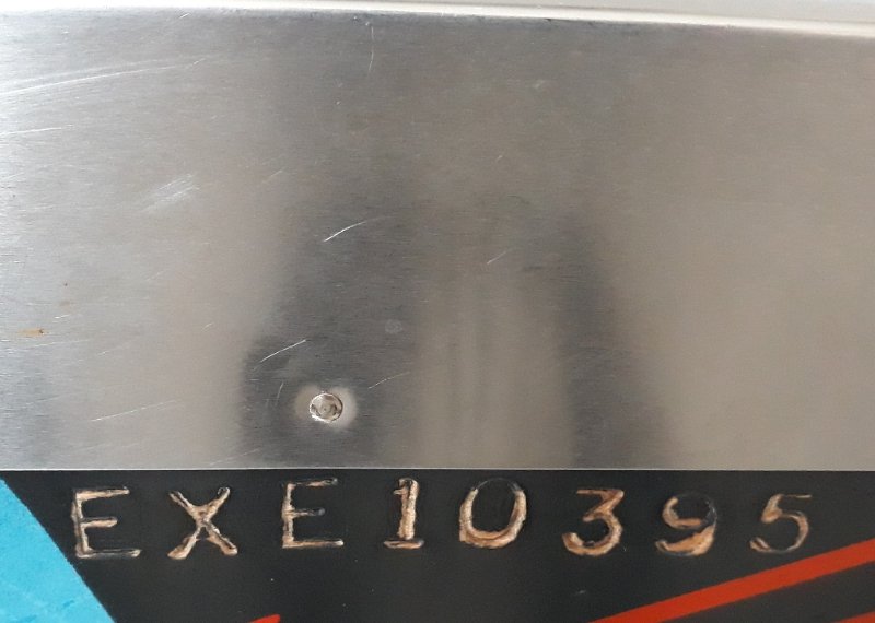 Zowel op het cabinet als op de kopkast is het serienummer gewoon in de verf gekrast.