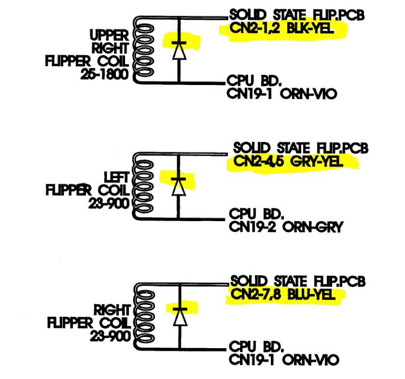 Naar coils gekeken flippers(nieuwe met nieuwe diodes). Diodes 2x doorgesmolten