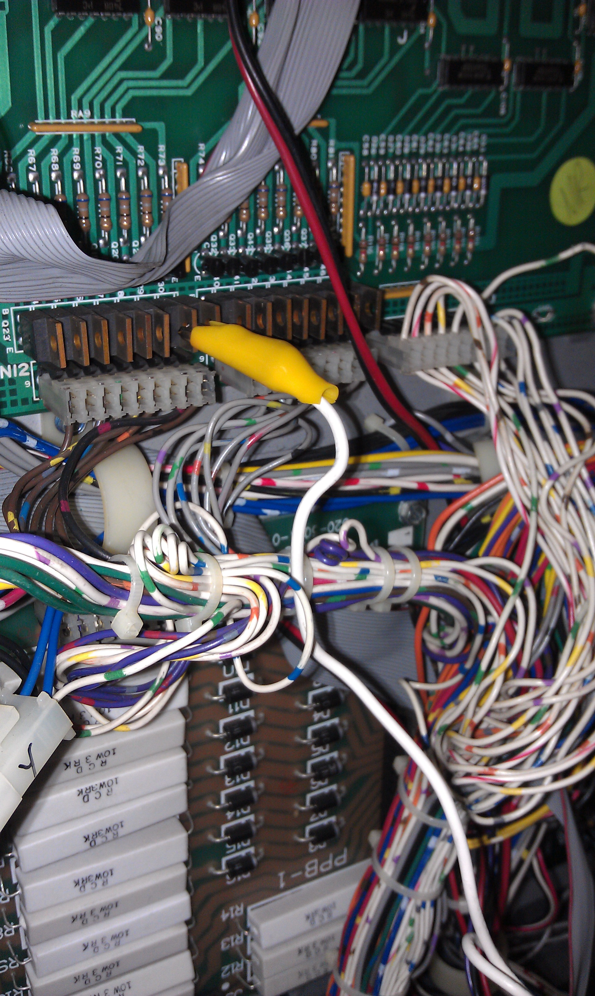 De transistor van die VUK is omzeep? Geen probleem toch, we zetten daar een krokodillenklem op met een draad naar de coindoor, in de coindoor zetten we een switch en met deze switch kunnen we dan de VUK handmatig laten schieten...