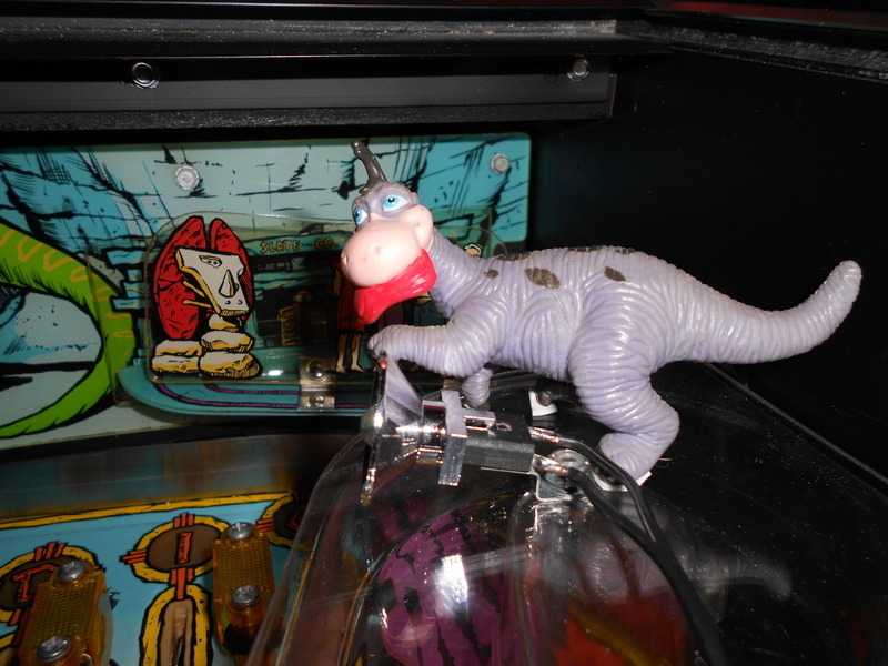Figuur Dino geplaatst. Op de foto is wat dubbelzijdig tape te zien waarmee hij vast zit door het inzoomen. Vanuit players view zie je hier niets van.