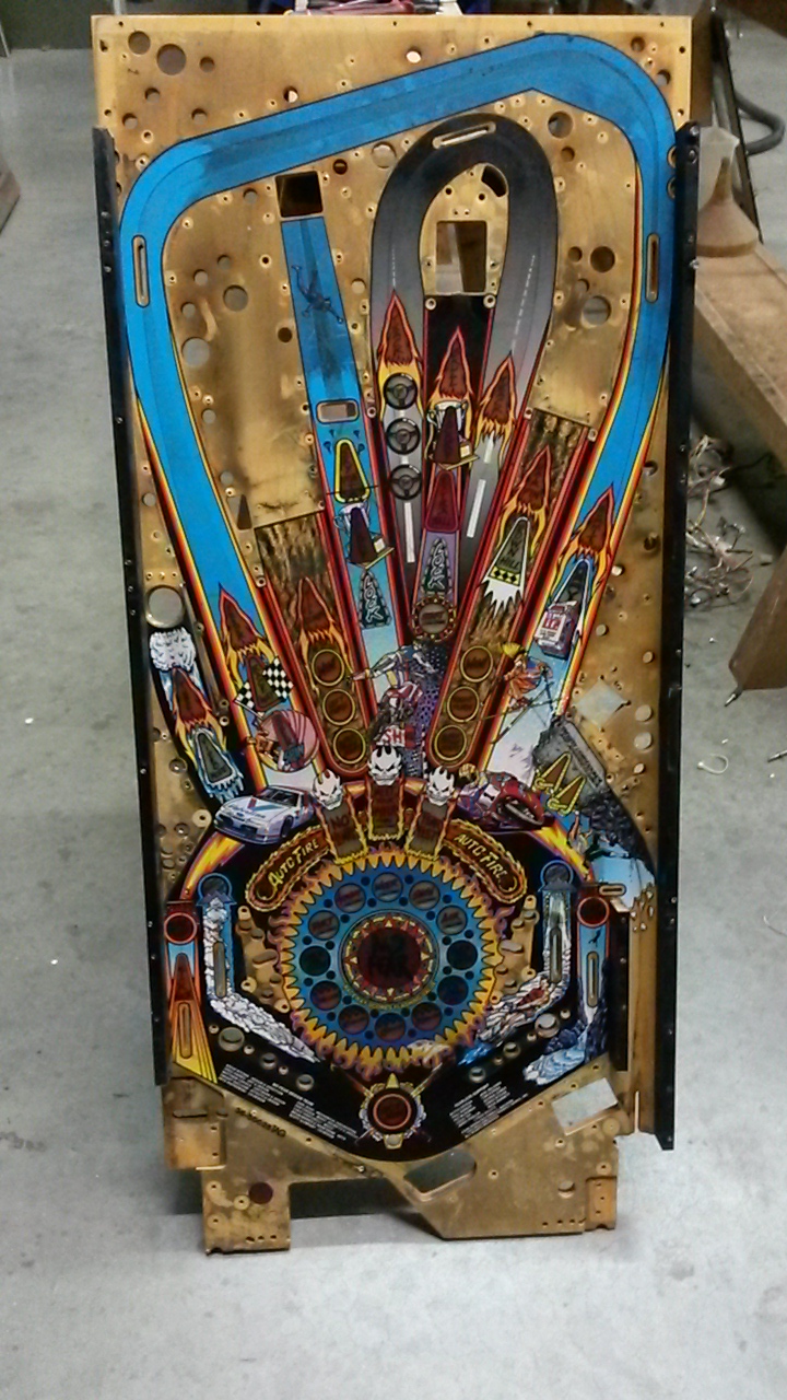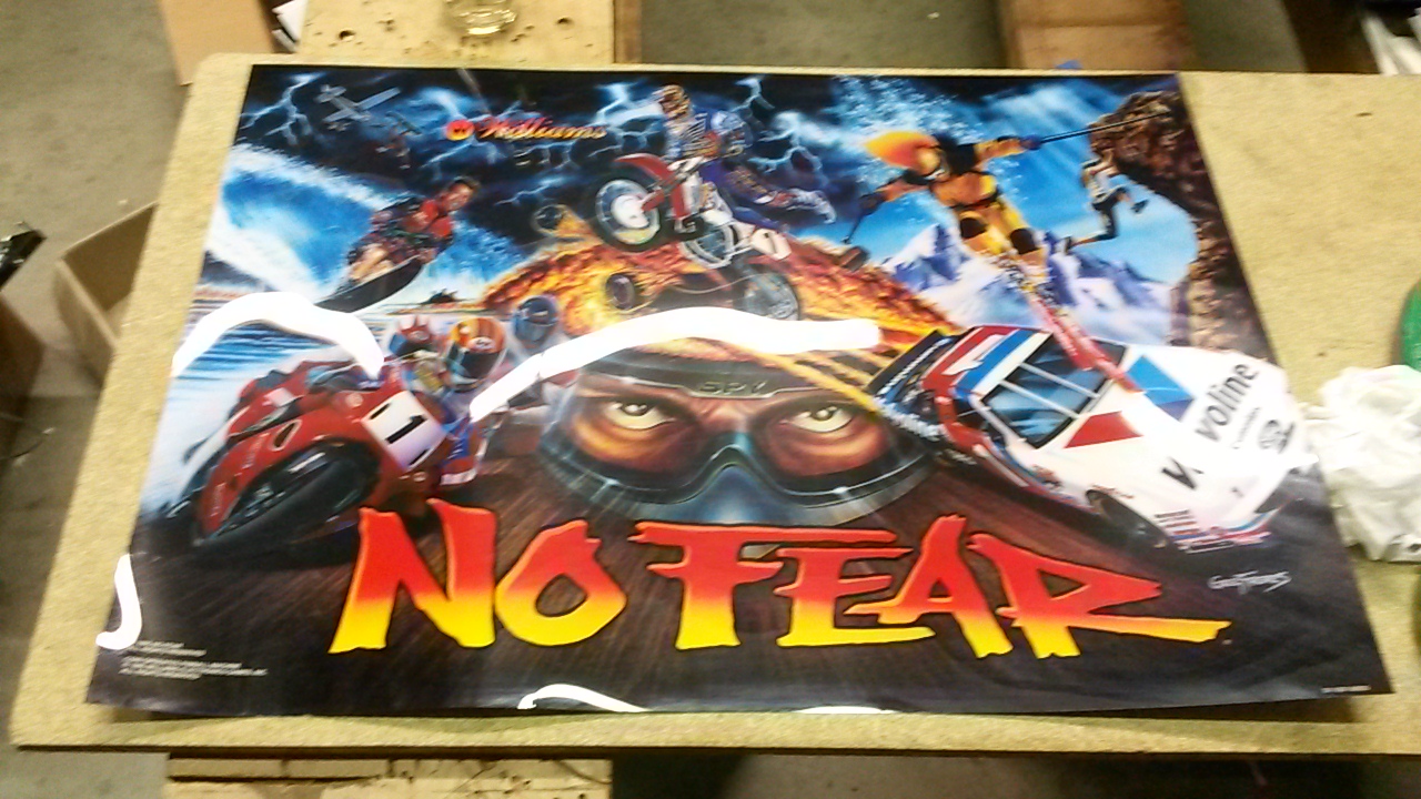 Is een compleet leeggeroofd No Fear speelveld in puike conditie buiten wat schade aan de rechterflipper.