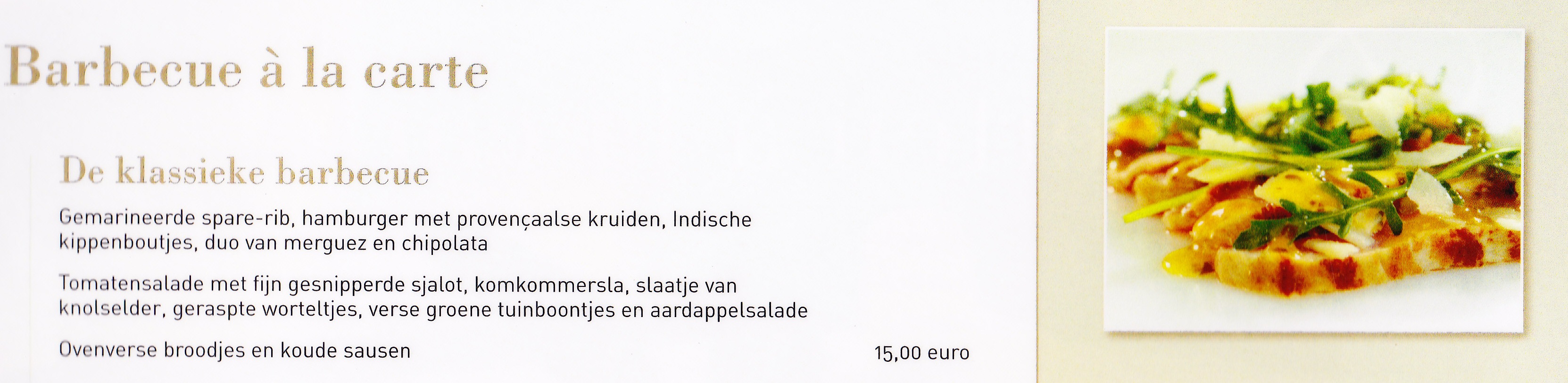 Voor de prijs van 15euro kan je mee BBQ'en en krijg je onderstaande menu voorgeschoteld!