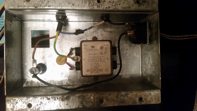 En dat schijfje is de varistor, die is netjes verbonden met het filter...