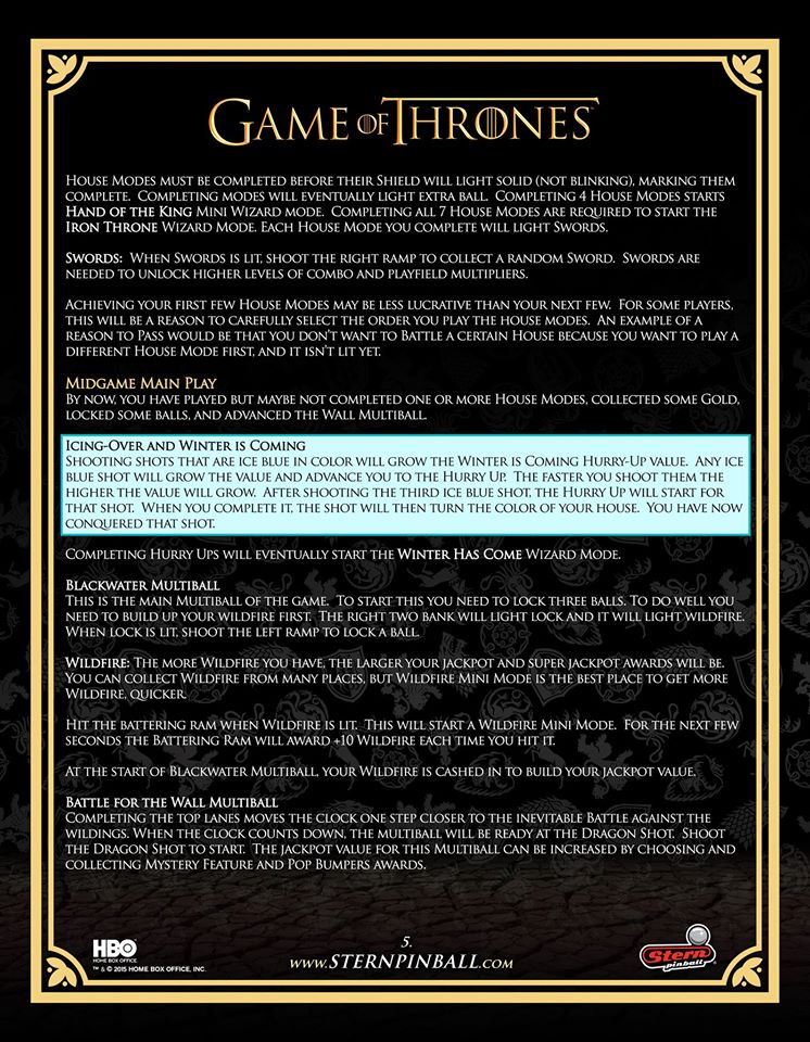 Code 1.17 introduced new video mode enhancements to Game of Thrones Pinball! ‪#‎SternPinball‬ ‪#‎GameOfThrones‬ ‪#‎VideoMode