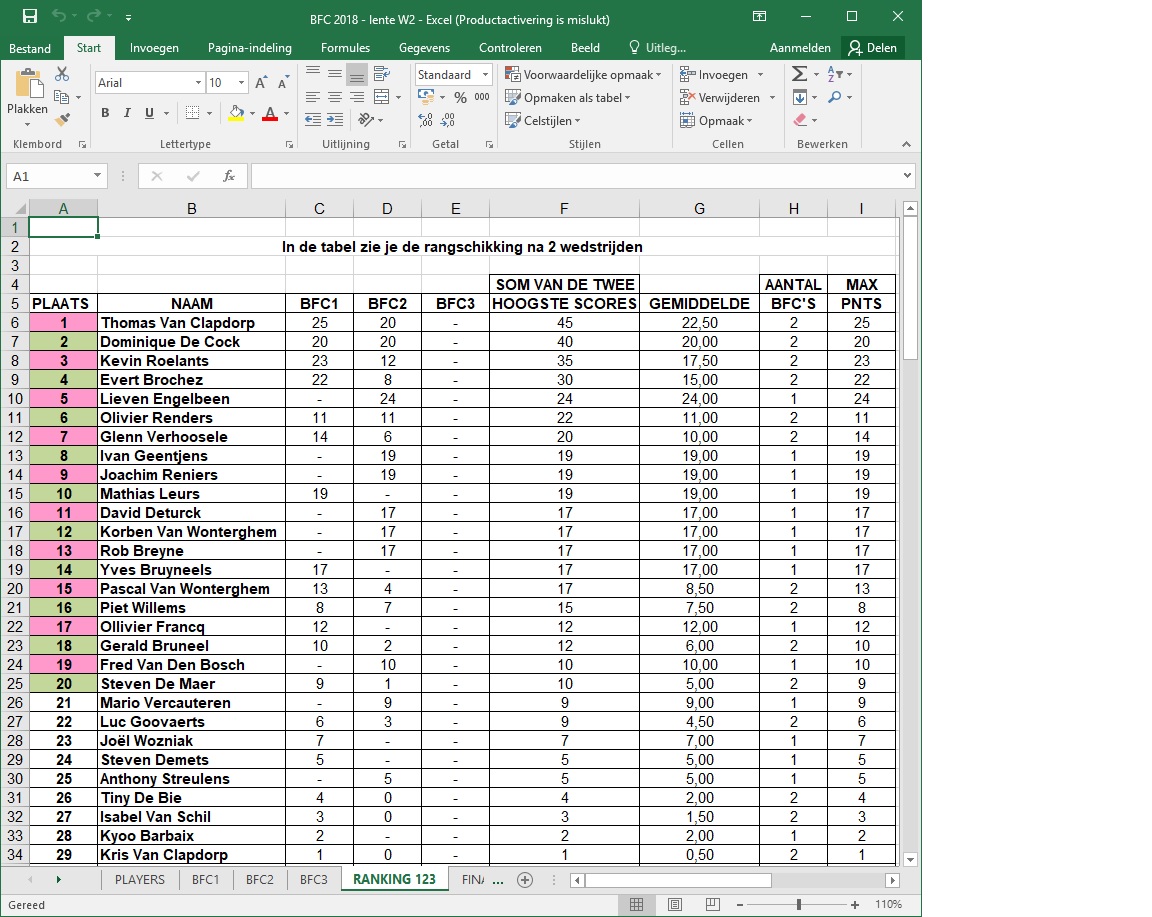 De uitslag van BFC 8 Deinze