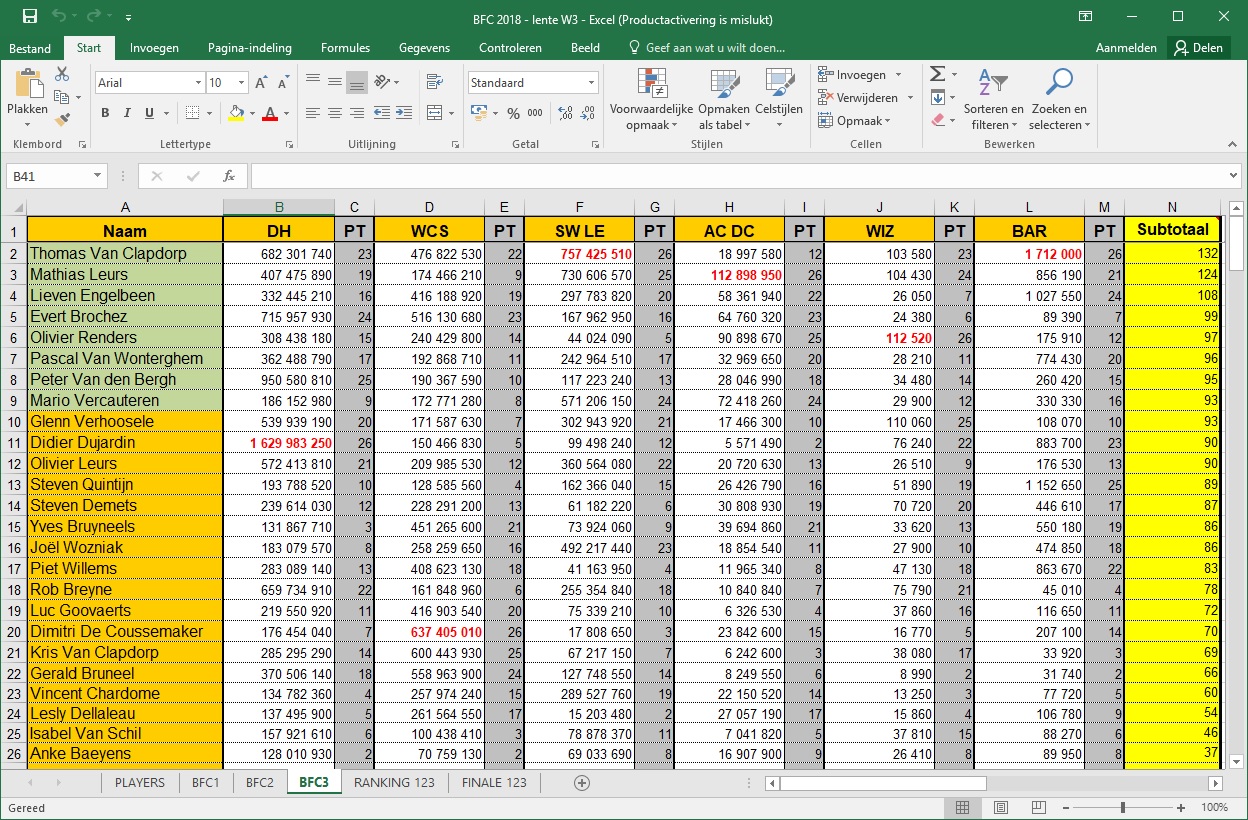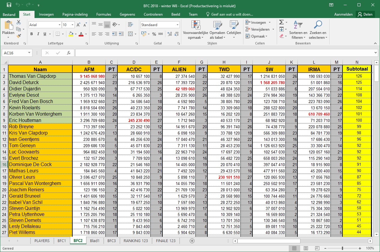 Insgelijks! Altijd plezant die BFC's, zowel de wedstrijd alsook om iedereen eens terug te zien!David Pinball Wizz schreef:Dank u aan de organisatie!