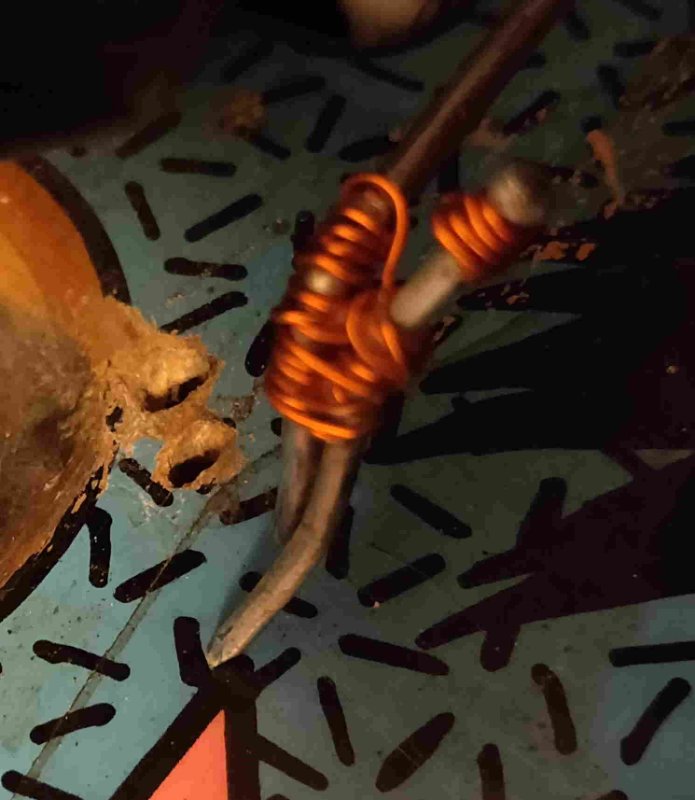 Een nieuw ijzertje buigen (ik gebruik altijd een TIG lasdraad van de juiste dikte) en weer in de gaten plaatsen.