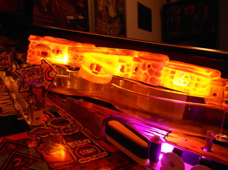 Hieronder de verlichte apron, er zitten ook 2 flashers (1 onder rulecard en 1 onder freeplay card) deze gaan aan tijdens de dig millions mode.