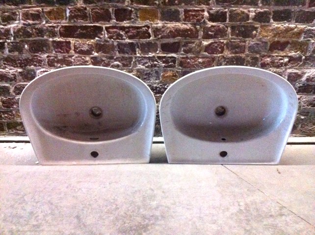 GRATIS mee te nemen: 2 lavabo's (59x47cm), in orde alleen heel vuil...