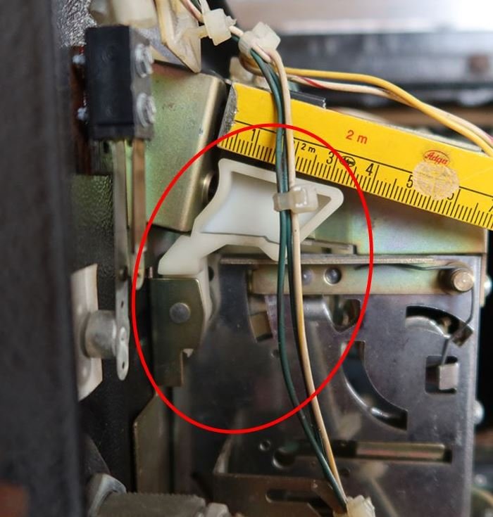 Verder ben ik ook op zoek naar het plastieken stuk dat in de Coin-Door de knoppen (om geld terug te vragen) terug op z'n plaats brengt (coin return lever?). Iemand een idee waar je deze kan krijgen?