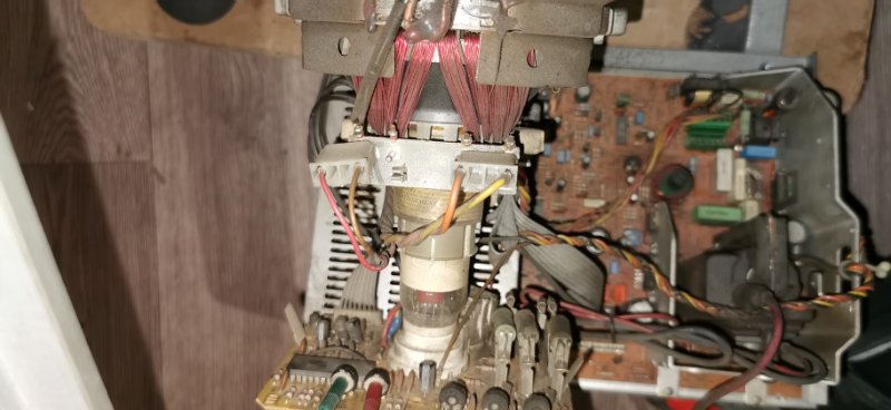 Toen haalde ik de monitor weer uit de kast, om een aantal schroefjes goed vast te zetten. Nadat ik de monitor op mijn tafeltje had gezet en me omdraaide om iets te pakken... VIEL DE HELE BEELDBUIS OP DE GROND!!!!