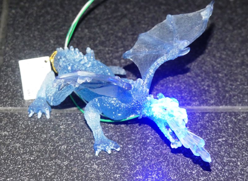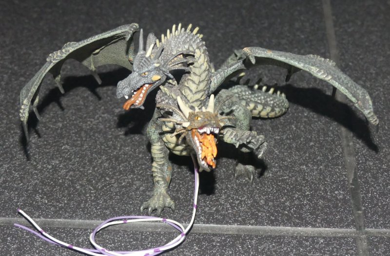 Led in de mond van de draak voor licht effect (aan te sluiten op bestaande bedrading)