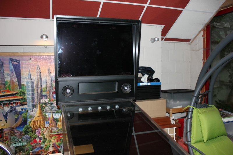 - In de kopkast zit een monitor om een backglass op te tonen, MAAR die is 99% zeker volledig kapot. Daar zal een nieuwe in moeten