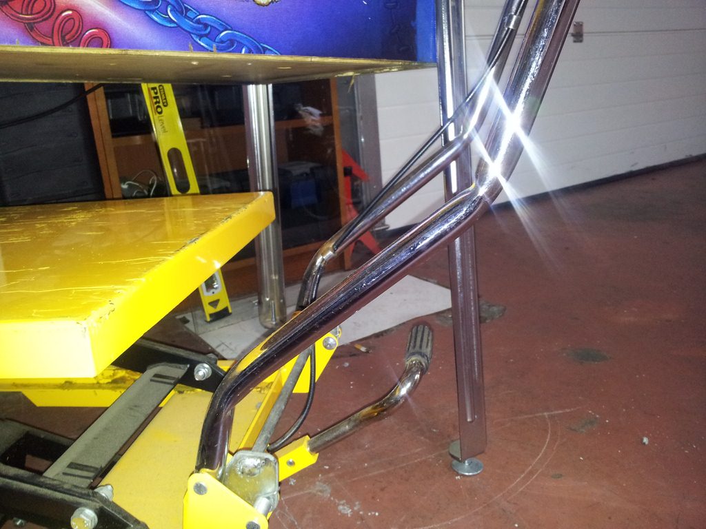 ik heb ze wel onderaan aangepast en de duwstangen niet geplooid. Wel door het Zwaar metaal de gaten geboord en terug vast gebout. Wel kan je dan die niet meer overplooien en onder een flipperkast schuiven..