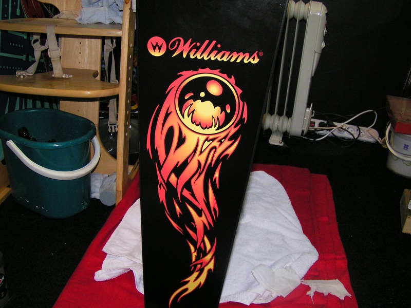 Ben er nog niet helemaal uit wat in nou met de start gaten en de flipperknop gaten ga doen. Ik denk dat ik met zwarte verf de randjes iets bijwerk en vervolgens met blanke lak de randjes van binnen even aflak.