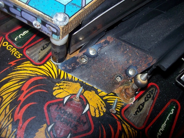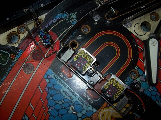 Je ziet dat sommige inserts volledig weg zijn, bellen onder het mylar en vooral links op het speelveld grote schade.