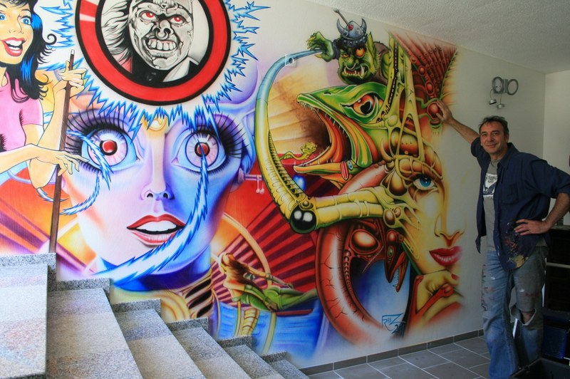 Ik wilde een van de muren van mijn gameroom ook laten airbrushen.