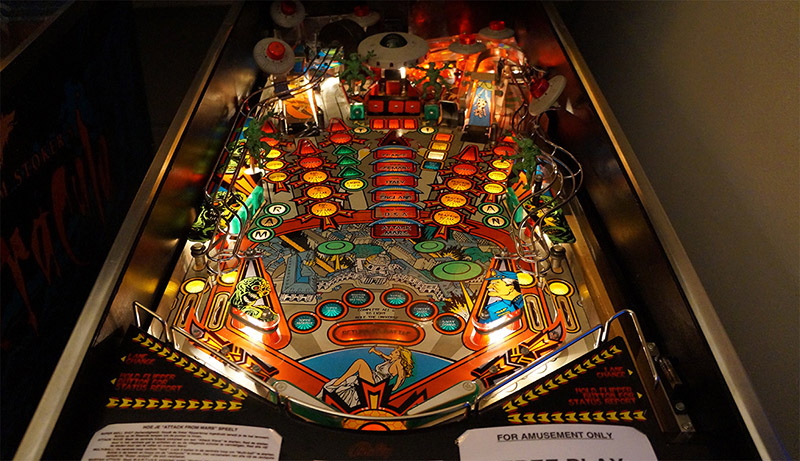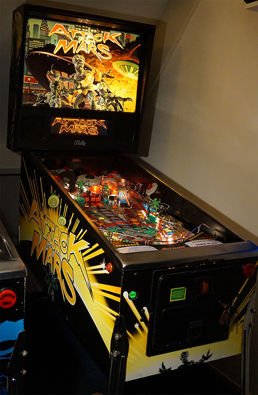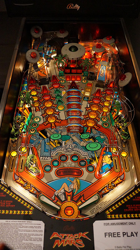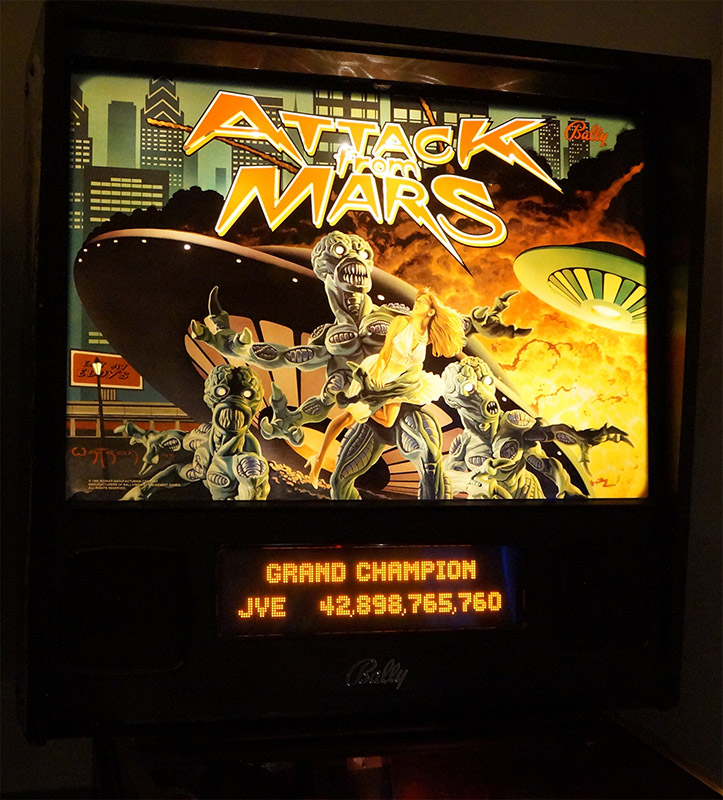 Ik bied mijn zeer mooie Attack from Mars aan. Deze kast is in 1995 naar Nederland geïmporteerd en stond hier maar kort in exploitatie. Daarna is de kast in collectorshanden gekomen en zeer goed behandeld. Hierdoor is de kast nog buitengewoon netjes en het originele speelveld nog zeer mooi, zeker voor een Attack from Mars. De ramps zijn netjes, de plastics zijn heel.