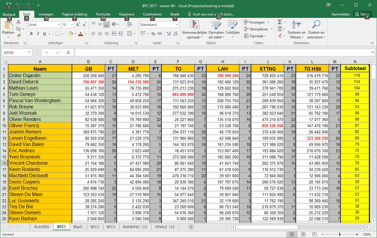 Voor alle duidelijkheid, er zijn maar 24 plaatsen. Geen 28. Kolomscheiding is verkeerd. Lieven is dus de laatste...