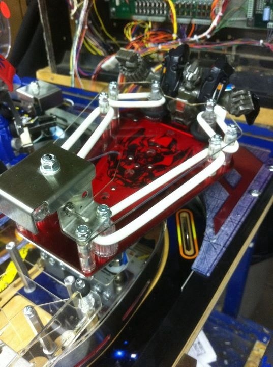 The Ironhide mini-playfield above was shown which will feature optical sensors in the base which register the ball's movement and light up as the ball passes over them. Access to the mini-playfield is controlled by a gate at the entrance which can open to allow the ball the enter, or stay closed to send the ball back down the right exit ramp.