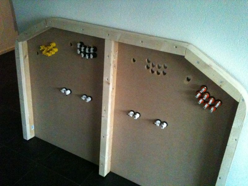 Nu alles verder gaan opbouwen/inbouwen, ik ga morgen de zijkanten zagen en de hoek van de tv en boxen bepalen.