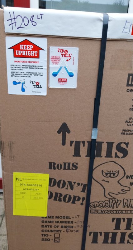 De flipperkast in de doos was niet geraakt.