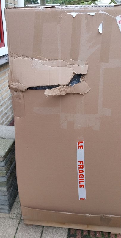 De doos was beschadigd tijdens transport, maar gelukkig was het alleen maar dat, de doos.