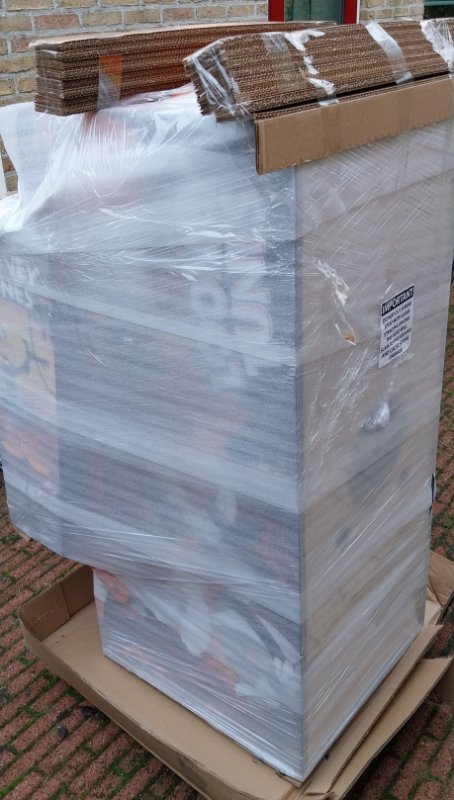De kast met doos paste niet door de deur, dus geen unboxing party helaas.