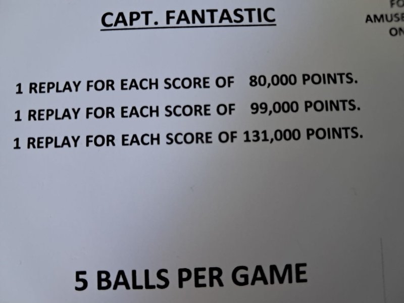 Betreft het krijgen van een vrij spel bij het bereiken van een aantal scores. Bij de ene Capt. Fantastic is het bij 70.000 points, bij de andere 80.000 points. Hoe is dit te veranderen in de flipperkast ?