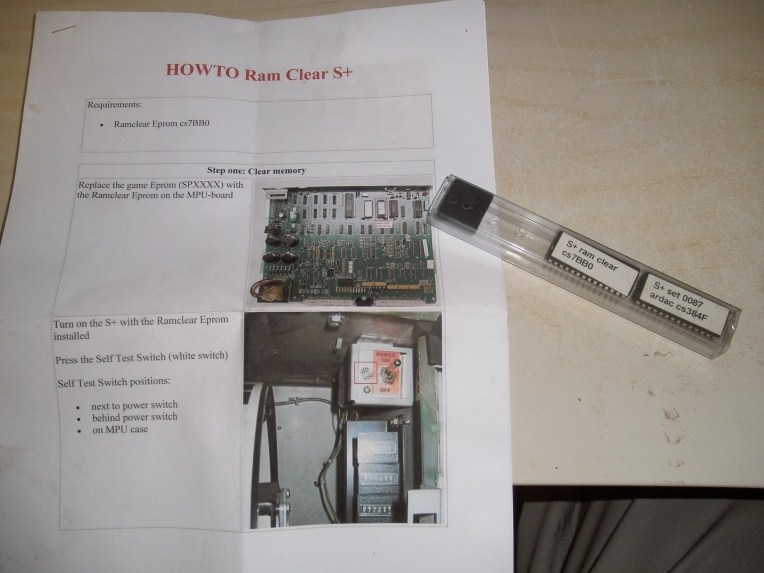 Alle stukken zitten erbij zoals de sleutels om de kast te openen, het biljettenbakje te openen, de credits te resetten... Ook zitten er 2 Eprom's bij waarmee je de kast kunt instellen op bijvoorbeeld 50 cent of 1 euro.